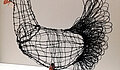 Die Besonderheit meines Vogels liegt in seiner „luftigen Art“, denn ich habe mich beim Herstellen meines Drahthuhns dafür entschieden, den Körper nicht zu wickeln, sondern ein Grundgerüst herzustellen, dessen Inneres frei bleibt. Abgestimmt auf den Körper, habe ich mich auch beim Kamm und Schnabel für eine minimalistischere Darstellung entschieden, um so den Stil des Körpers aufzugreifen und das Huhn im Gesamten stimmig wirken zu lassen.