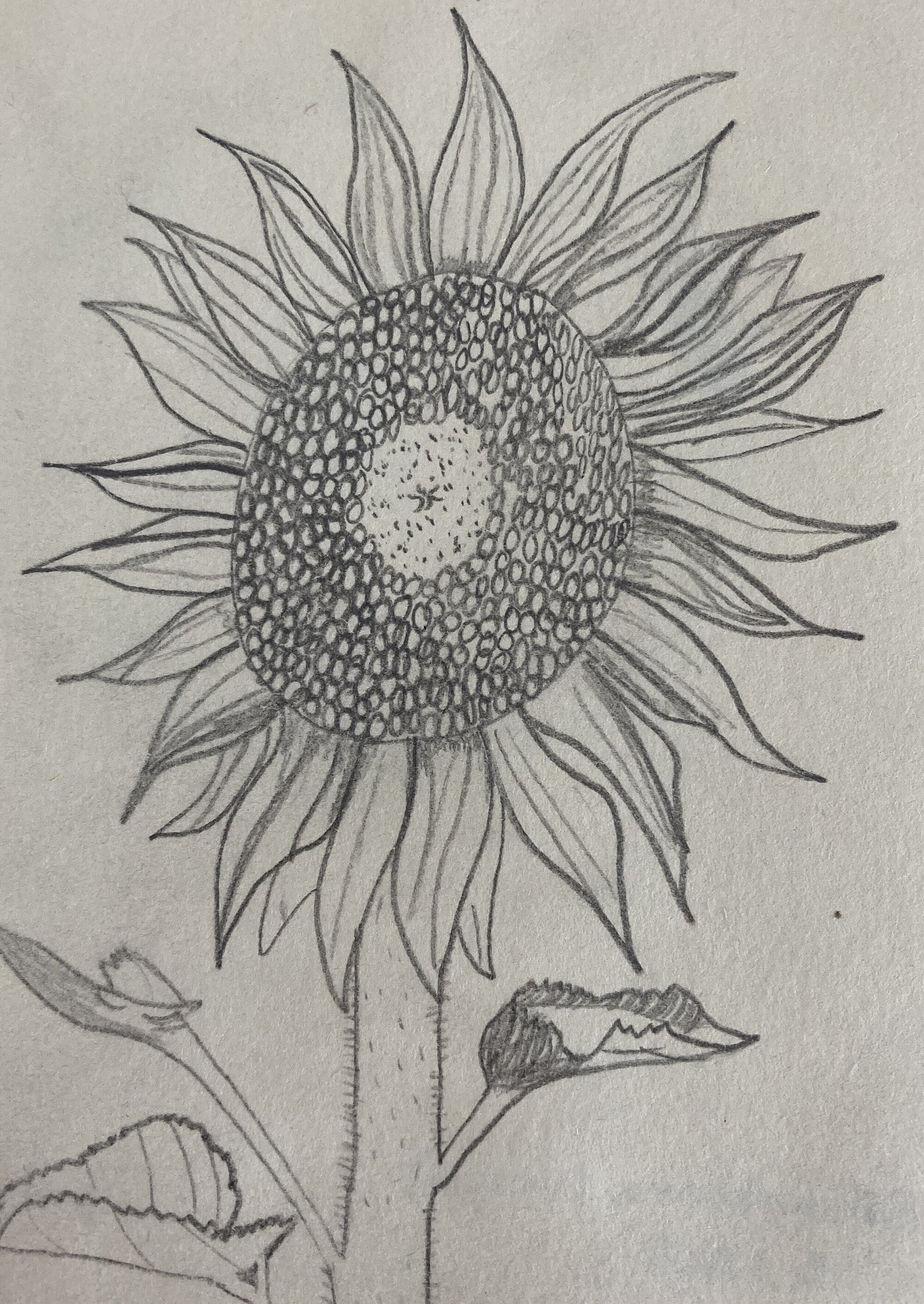 Kunst war für mich immer schon eine Herausforderung. Besonders Farbverläufe sind schwierig. Bei allen Bildern habe ich mir damit schwergetan, zwischen „wichtigen“ und „unwichtigen“ Details zu unterscheiden. Teilweise habe ich mich in einzelnen Härchen am Stiel verloren, während der Kopf der Blume noch intensive Zuwendung benötigte. Wie weit geht man beim Skizzieren und welche Details sind wichtig für das Bild, welche lenken vom großen Ganzen ab? Fragen, die ich mir auch im Nachhinein noch stelle. Leichter als das Zeichnen vom Orginial hingegen fiel mir das Zeichnen anhand eines Fotos der jeweiligen Pflanze. Ich mag es, wenn ich nicht frei zeichne, sondern eine Vorlage habe, auf die ich zurückgreifen kann. Das gibt mir Sicherheit und ich bin weniger gestresst, ob mein Bild so wird, wie ich das möchte.