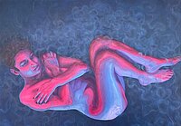 Die Ausstellung „Was wir aushalten“ zeigt großformatige malerische Arbeiten von Elisa vom Bruch, welche im Rahmen verschiedener Ausstellungen während ihres Studiums entstanden sind. Ihre Werke bewegen sich in einem Spannungsfeld zwischen persönlicher Erfahrung und gesellschaftlicher Relevanz. Im Zentrum stehen Themen wie Identität, Liebe, gesellschaftliche Akzeptanz und Feminismus, welche aus einer queeren Perspektive aufgezeigt werden. Vom Bruch stellt intime Momente und emotionale Zustände so dar, dass sie über das persönliche hinausgehen und auffordert, eigene Denkmuster zu hinterfragen und Anknüpfungspunkte für eigene Erfahrungen bietet.