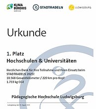 Beim Stadtradeln 2025 belegte das Team der Pädagogischen Hochschule Ludwigsburg in der Gruppe „Hochschulen und Universitäten“ den 1. Platz.