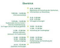 Am Informationsstand erhalten Sie alle Informationen zum Programmablauf und Unterstützung beim Finden der einzelnen Veranstaltungen auf dem Campus.